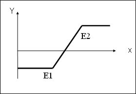 Lבכל מחיר שבו נכס הבסיס נמוך או שווה למחיר המימוש E1, ההפסד נשאר קבוע.