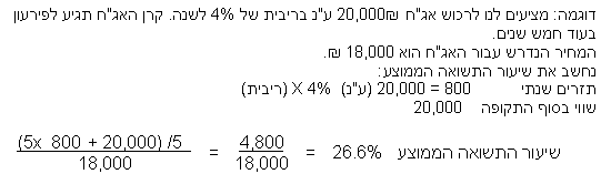 תוצאת החישוב היא התשואה השנתית הממוצעת על הסכום שהושקע.