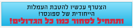 התחל לסחור דרך ספונסר כמו שסוחרים המקצוענים ותהנה מ: 0.07% למק"מ ואג"ח מדינה. לסוחרים פעילים אנחנו מציעים מערכות מסחר מתקדמות (FMR נל"ני וסטרימינג אינטרנטי) במחירים אטרקטיביים, עמלות נמוכות ביותר והטבות נוספות. לקבלת פרטים נוספים ניתן לפנות לדובי בטלפון 03-5755127 ובמייל [email protected] |
