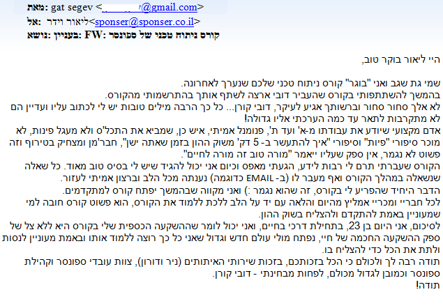 מצורף כלשונו מייל שנשלח אלינו מבוגר הקורס לניתוח טכני