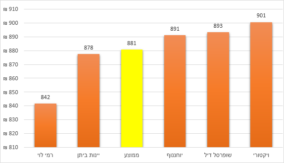 בהשוואה לחודש הקודם, מרבית הרשתות, כ65%, הוזילו את עלות הסל. רשתות "יינות ביתן בסיטי" ו"מגה בעיר" הציגו את ירידת המחירים הגבוהה ביותר בשיעור של 5.6% ו-5.4% (55 שקל ו-56 שקל, בהתאמה). רשת " מחסני השוק אונליין" הציגה את עליית המחירים הגבוהה ביותר בשיעור של 1.9% (17 שקל).