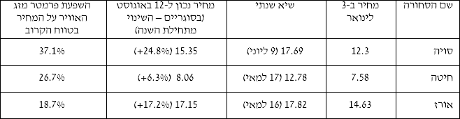השפעת פרמטר ’מזג האוויר’ על המחיר