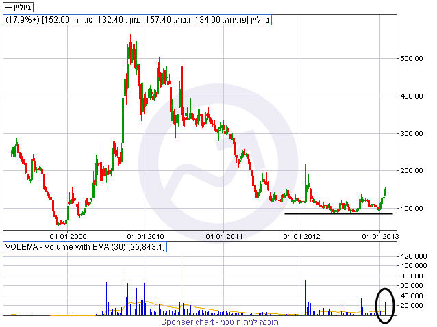 כפי שניתן לראות בגרף השבועי המצורף, מניית ביוליין נמצאת במומנטום מאוד חיובי בשבועות האחרונים, תוך מחזורי מסחר הולכים וגדלים וזאת אחרי התבססות של כשנה סביב רמה של 100 נקודות. כרגע נראה כי למעט תיקונים טכניים היא אמורה להמשיך ולעלות אל עבר שער 200 לקראת פרסום התוצאות שכולם מחכים להם במרץ.