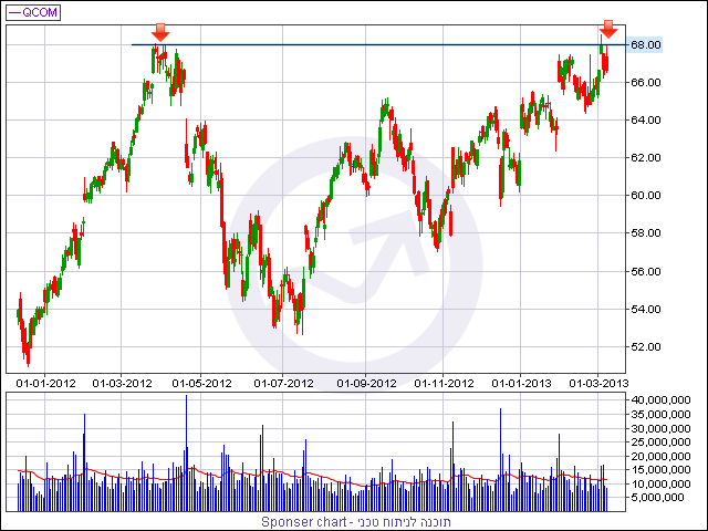 מהזווית הטכנית, המניה עלתה ביום שלישי שעבר לרמה של $68.5 ונסוגה חזרה עוד באותו היום. בהמשך השבוע המניה התממשה ונכשלה פעמיים בפריצה חזרה אל מעל רמת ההתנגדות האופקית ב- $68. בשל כישלונות הפריצה של רמת התנגדות המהותית מתהווה תבנית שינוי מגמה בטווח הקצר כאשר התבנית הנוכחית תקבל תוקף לשינוי מגמה לטווח הקצר בשבירה כלפי מטה של רמת ה- $66, לאגרסיביים בכישלון פריצה נוסף של רף ההתנגדות ב- $68. רק פריצה וסגירה מעל $68, בליווי מחזור מסחר מעל הממוצע התקופתי, תהווה טריגר אמין לפריצה והמשך המגמה החיובית בנייר.