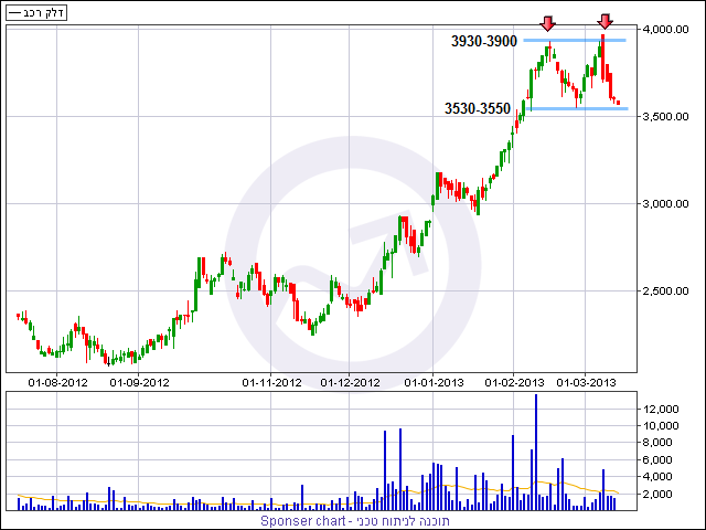 מהזווית הטכנית, מהלך עליות חזק במחיר המניה דחף אותה לגבהים שלא נראו מאז קיץ 2011, עליות שערים שהחלו ברמות מחיר של 2100 נקודות ונבלמו לאחרונה סביב 3900 נקודות. מתחילת פברואר למניה קשה להתקדם קדימה ונרשמה התנגדות כפולה סביב 3900-3930 דבר שיכול להוציא תבנית "M" לטווח הקצר ותיקון מעט עמוק יותר. קו התמיכה של המניה נמצא סביב 3530-3550 נקודות למניה ושבירה שלו למעשה תוציא את התבנית אל הפועל עם יעד יורד לכיוון 3200.