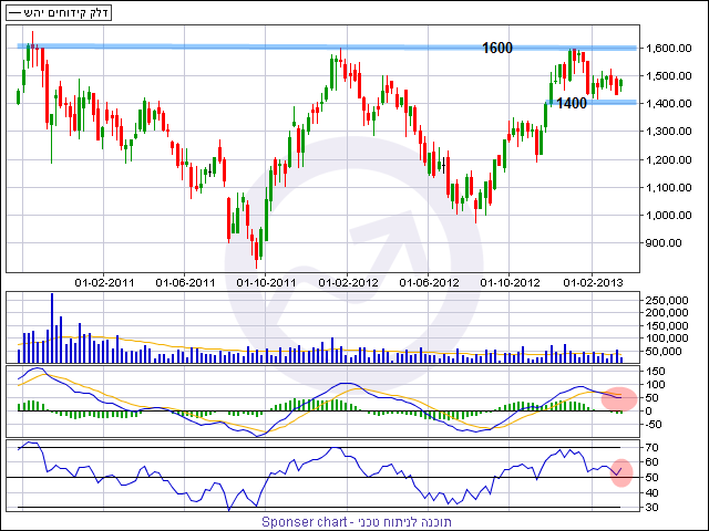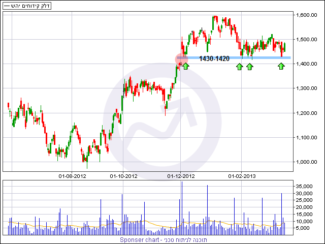 מניות דלק קידוחים נסחרות בתקופה האחרונה בתנודתיות נמוכה עם טווח מסחר צר מאוד. אזור תמיכה חזק מאוד סביב 1420-1430 נקודות בגרף היומי שהוא גם פער מחירים פתוח שמחזיק כתמיכה ומנגד אזור של 1515-1520 נקודות מהווה התנגדות נקודתית.