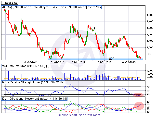 הנחת עבודה טכנית – הקרבה לאזור 820 נקודות סביר שיכניס מעט פוקוס על המניה. היפוך סביב רמה זו יכול לתת איתות קניה אגרסיבי לסוחרים זריזים שרוצים רווח מהיר לטווח הקצר. מצד שני (ותמיד יש צד כזה) המשך הטרנד היורד ושבירת התמיכה שצוינה לעיל אינה תבשר טובות למשקיעים וסביר שנראה רמות נמוכות יותר בתקופה הקרובה.