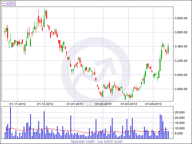 מהזווית הטכנית, מניית סלקום נסחרת במתווה של מגמה עולה החל מסוף חודש פברואר. בשבוע שחלף המניה התממשה קלות ואמש (א’) המניה זינקה ב- 2.7%, בניגוד למגמת השוק ובונה תבנית המשך מהלך עולה. תבנית זו עשויה לצאת לפועל בימים הקרובים כאשר הטריגר החיובי יתקבל בפריצה כלפי מעלה של רף ה- 3,475 נקודות. מחיר יעד התבנית הנוכחית סומן ברמה של 3,830 נקודות וקיומה של המגמה החיובית לטווח הקצר תתקיים כל עוד המניה נסחרת מעל רף 3,275 נקודות.