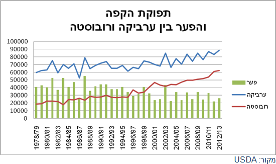 בנוסף, להערכתנו, פוטנציאל צמצום הפרמיה בין הערביקה והרובוסטה מוגבל מאד, ופוזיציית גידור לונג ערביקה-שורט רובוסטה החל מרמת מרווח של 25 סנט תניב רווחי הון למשקיעים בטווח הבינוני.