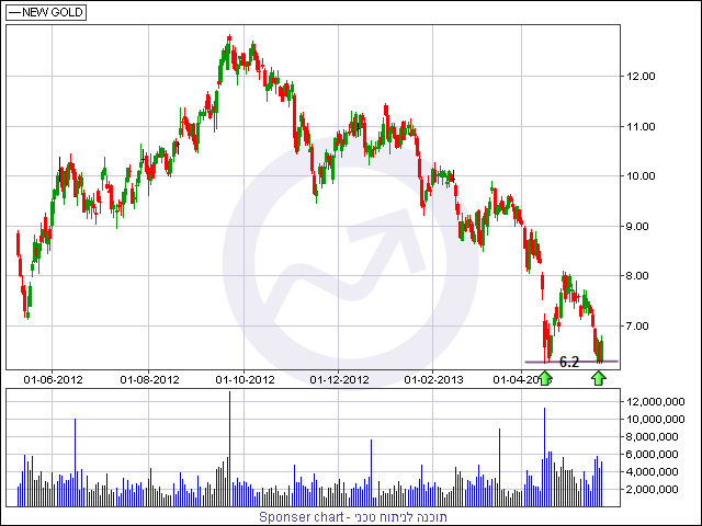 טכנית המניה בצעה אמש היפוך מעל רמת תמיכה שהיא הנמוך האחרון מאמצע חודש אפריל, אזור של 6.25-6.2 דולר מהווה אזור תמיכה ואילו יעד ראשון במקרה של יציאה לגל מתקן נמצא סביב 8 דולר. יחס סיכון סיכוי חיובי ביותר בטח למי שמאמין בזהב בנקודה הנוכחית.