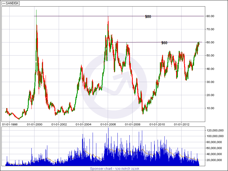 מהזווית הטכנית, בגרף ארוך הטווח המצורף לסקירה ניתן לראות שהמניה נמצאת סביב אזור התנגדות לא פשוט ברמה של 60-62 דולר, סגירה מעל 60 דולר לא התקיימה מאז אמצע שנת 2006 כך שאינדיקציה טכנית חזקה תהיה בנעילה שבועית מעל הרף שצוין כשהיעד הבא יהיה באזורי השיא סביב 80 דולר רמות שבהן המניה בקרה פעמיים, פעם אחד בבועת ההייטק בשנת 2000 והשנייה בתחילת שנת 2006.