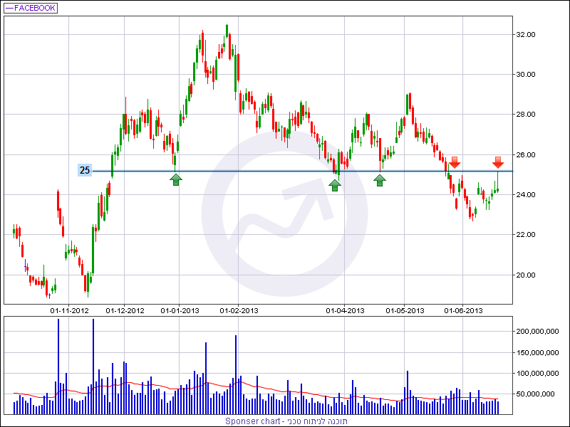 מניית פייסבוק (סימבול: FB) פתחה את שנת 2013 בסערה ורשמה זינוק של 22% במהלך חודש ינואר, אולם החל מחודש פברואר המניה נסחרת במגמה שלילית עם תיקוני ביניים אשר לא החזיקו מים ובניגוד למגמה הכללית של מדד הנאסד"ק 100 בה נכללת המניה.