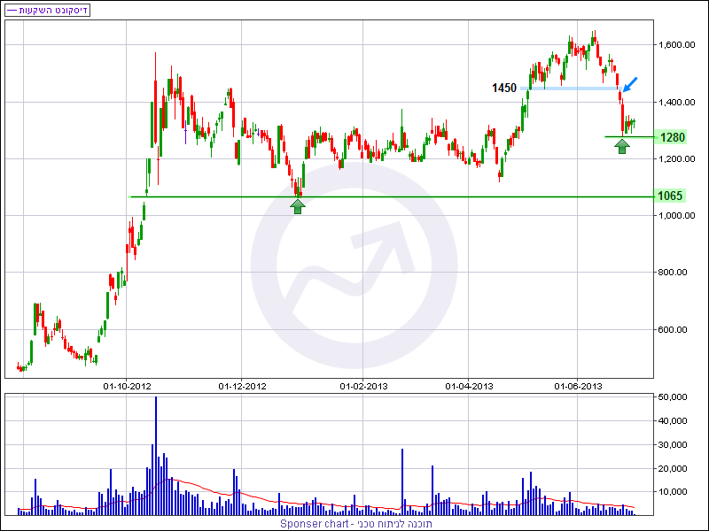 דיסקונט השקעות, חברת ההחזקות שבשליטת נוחי דנקנר, סובלת בתקופה האחרונה מירידות שערים. גל המימוש החל בתחילת חודש יוני ובשבוע שעבר המגמה השלילית בנייר החריפה, אולם מחזורי המסחר נעו סביב הממוצע התקופתי ובשל זה אינם משדרים "פאניקה". בנוסף, נכון לאתמול (א’) המניה רושמת מספר ימי התבססות מעל אזור התמיכה ב- 1,300 נקודות.