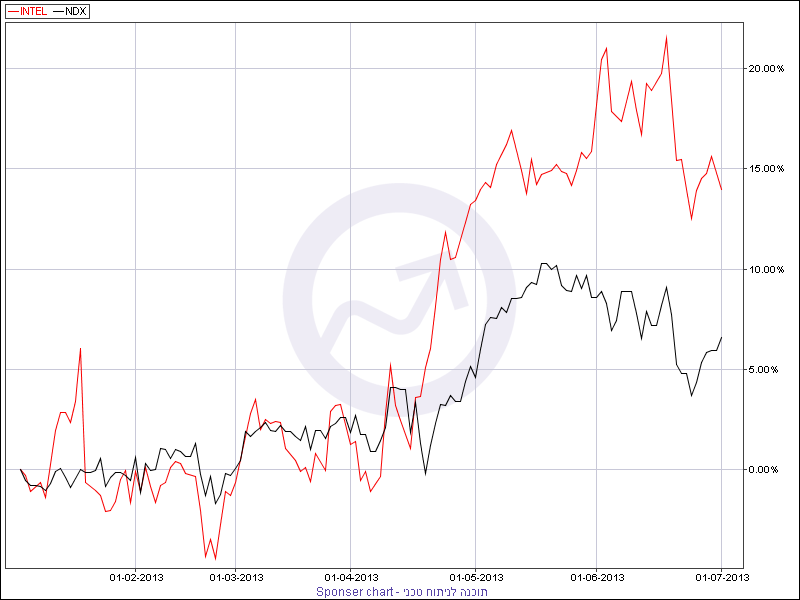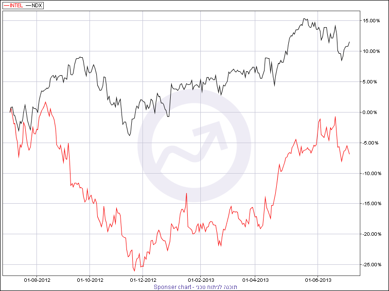 אינטל מול נאסד"ק 10 - גרף השוואה שנה אחרונה