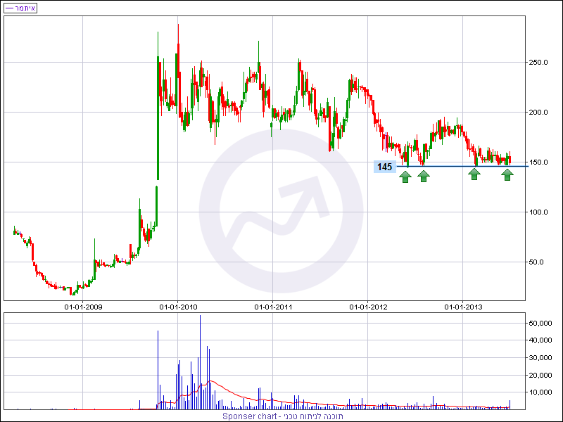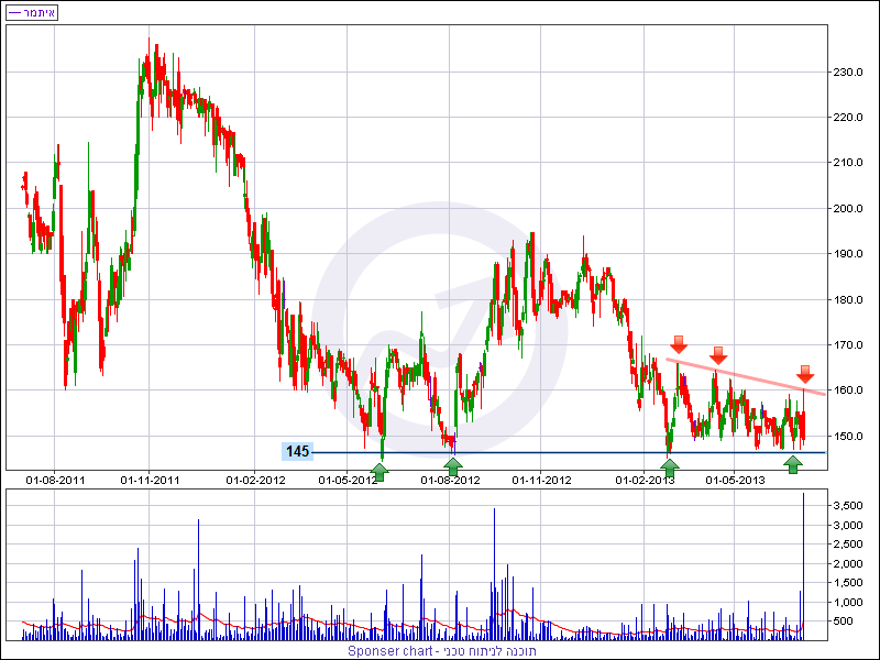 המניה פתחה את שנת 2013 בירידה והחל מחודש מרץ המניה מדשדשת בטווח מחירים צר בין 165 נקודות מלמעלה לבין 145 נקודות מלמטה. תקופת דשדוש דומה התרחשה גם באמצע שנת 2012 שלאחריה המניה יצאה לגל עליות קצר. המניה מתבססת תקופה ארוכה מעל 145 נקודות והתצורה הכללית בנייר מצביעה על תהליך מתקדם של שינוי המגמה השלילית שהחלה בחודש נובמבר 2011.