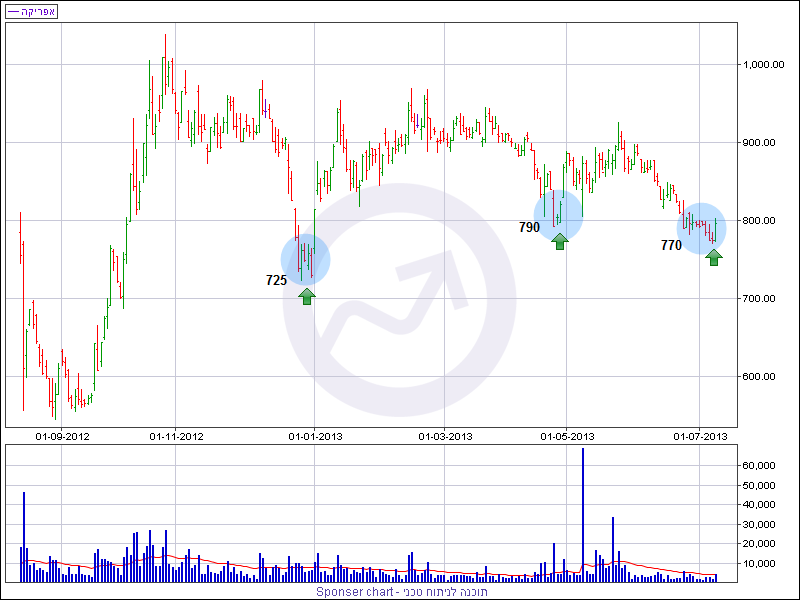 ההיפוך שנרשם אמש בנייר מהווה אומנם רק סנונית, אך ניתן לסמן תחתית לטווח הקצר בשפל האחרון ברמה של 770 נקודות וכל עוד נסחרת מעל רמה זו (במונחי שער סגירה) הפוטנציאל לשינוי מגמה יגדל. הטריגר לתחילת התיקון העולה יתקבל בפריצה כלפי מעלה של 811 נקודות כאשר מחזור המסחר יהווה פרמטר עיקרי ויכריע באם מדובר בפריצה אמינה ותחילת תיקון עולה, או שמה תיקון נקודתי והמשך המהלך היורד לשפל מסוף דצמבר 2012 סביב 725 נקודות.