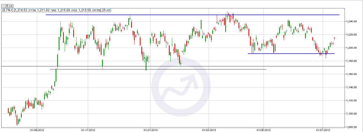 מדד הבנקים מסיים את השבוע האחרון בדיוק באמצע טווח הדשדוש בו הוא נסחר ב 7-8 החודשים האחרונים. טכנית, הצפי הוא להגעה לאזור העליון של הטווח סביב 1180-1200, כשבדרך ישנו פער מחירים פתוח ברמה של 1170 נקודות והתנגדות סביב 1185.