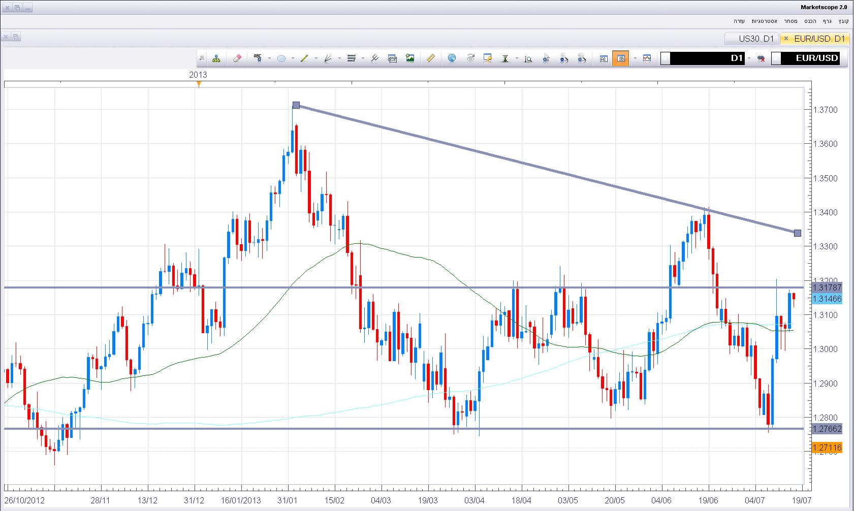 אם ברננקי יחזור על עמדותיו משבוע שעבר, ואין סיבה שלא יעשה כן, הדולר צפוי להיחלש ביתר שאת. הבה ננתח את מצבו של האירו-דולר, צמד המט"ח הנזיל בשוק העולמי, ונשרטט תרחישים אפשריים לקראת אירוע הסיכון היום.