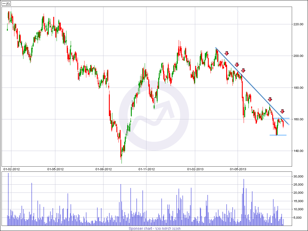 ניתוח טכני – כאמור, מניות החברה נסחרות במגמה שלילית ובירידות שערים בתקופה האחרונה, בשנה שעברה בדיוק בתקופה הזאת ראינו גל ירידות חזק מאוד שהחל באפריל 2012 ובמחיר של 220 אגורות והסתיים בספטמבר עם מחיר שפל 132 אגורות למניה.