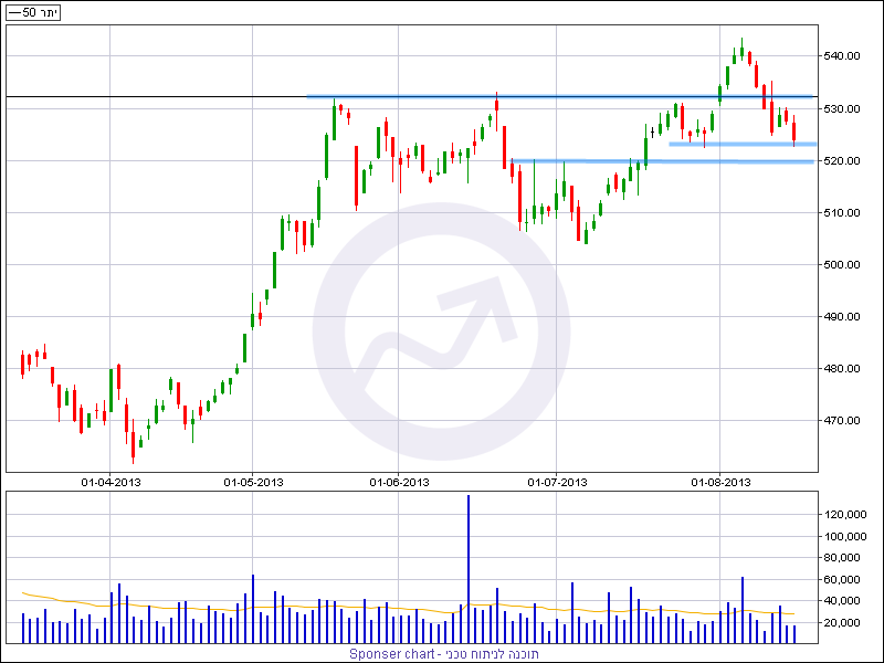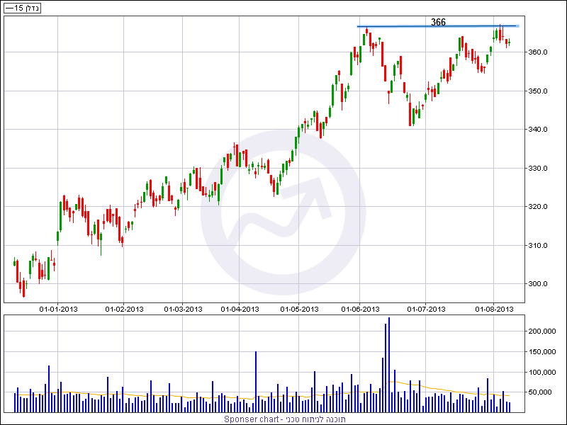 כפי שציפינו, הירידות המתונות במדד הנדל"ן הביאו לתקיפה נוספת של השיא האחרון ואזור התנגדות אופקי מהותי גם בטווח היותר ארוך סיבב רמה של 365-6 נקודות. טכנית השפל האחרון שנוצר ברמה של 354 נקודות הינו רמת הסטופ הקרובה למחזיקים במדד כשההערכה שלנו שיש סיכוי לפריצה אמיתית.
