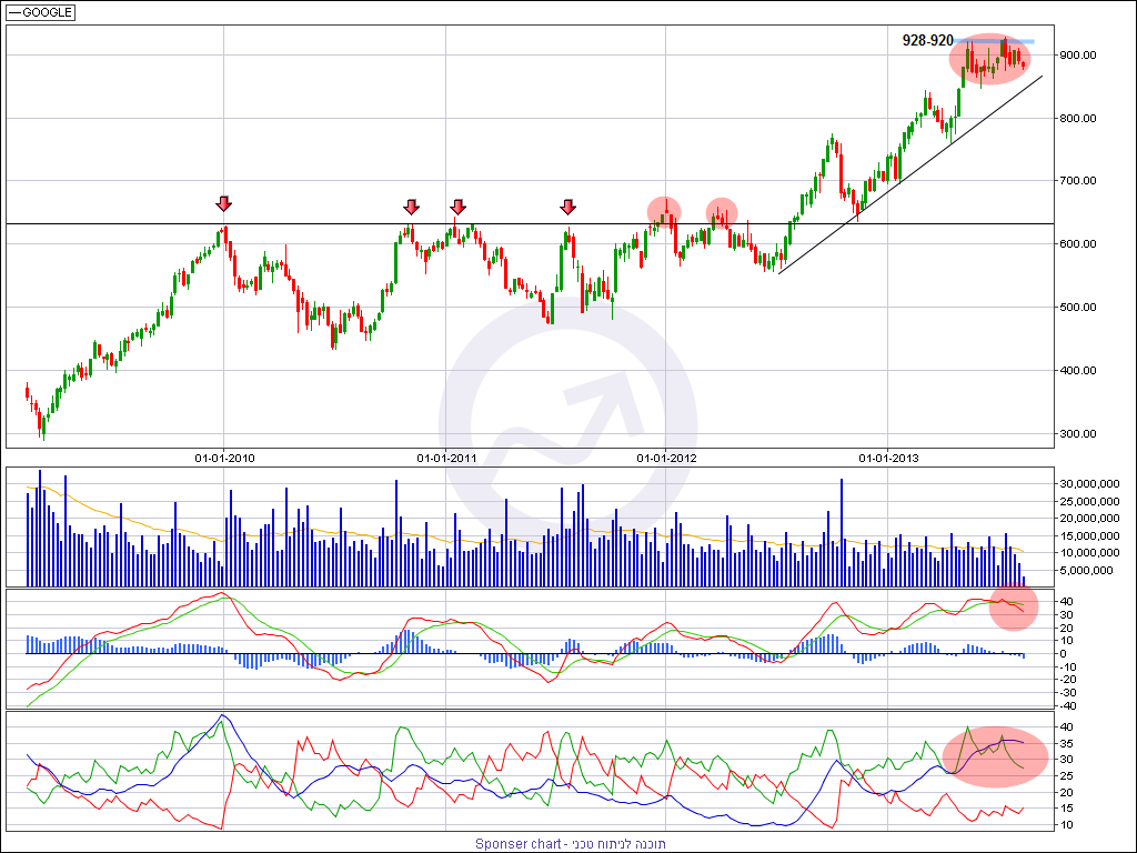 - חולשה ראשונה כאמור ראינו בחוסר היכולת לעשות שיא חדש והמניה נבלמה מעט מעל לשיא האחרון סביב 920 דולר.