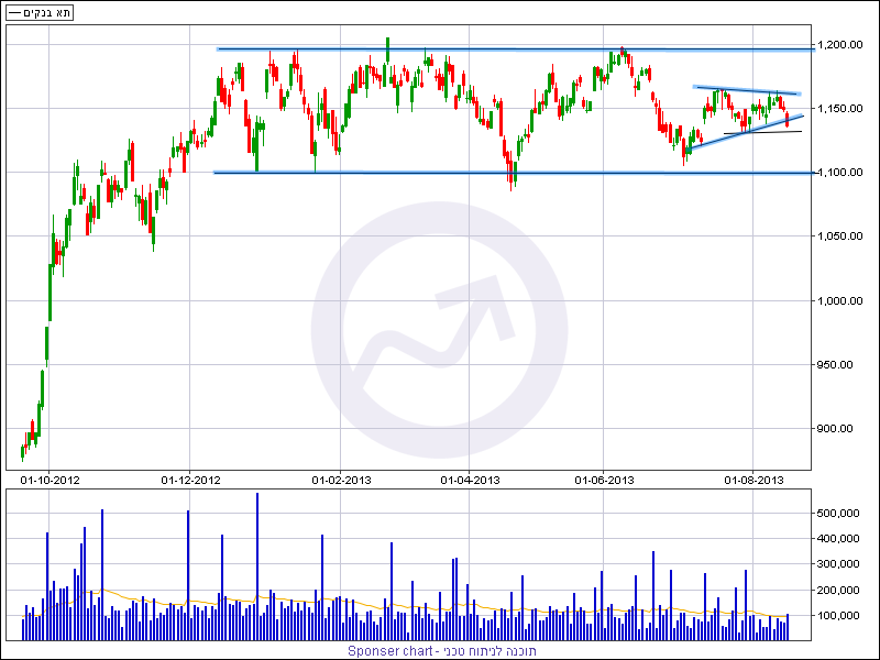 מדד הבנקים מסיים שבוע בתנועה שלילית עם שבירה של התכנסות מחירים לטווח הקצר, אישור לשבירה יתקבל סביב השפל האחרון סביב 1130 נקודות והיעד הוא לרמת התמיכה החשובה על הגרף סביב 1100 נקודות. חשוב להזכיר שהמדד זז כבר 8 חודשים בין 1100 ל 1200 נקודות והיציאה מהטווח הזה תהיה מאוד מהותית ועוצמתית בכיוונה.
