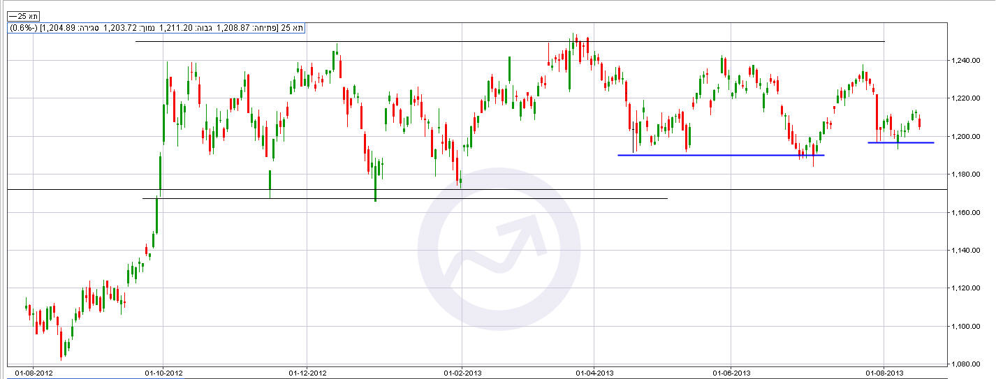 המדד עלה בכ- 0.2% במהלך השבוע החולף, וסיים את המסחר ברמה של 1205 נקודות, וזאת לאחר שנתמך בשבוע שעבר מעל רמת אזור התמיכה שנמצא סביב רמות של 1190-1195 נקודות. כרגע, רק שבירה ברורה של תמיכה זו, תבשר על המשך ירידות שערים לכיוון התמיכה המשמעותית הבאה השוכנת ברמה של 1165 נקודות, כשהמשך תיקון הגיוני כלפי מטה בארה"ב יכול להוות לכך טריגר.