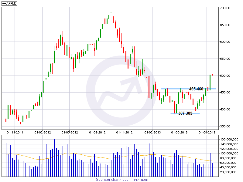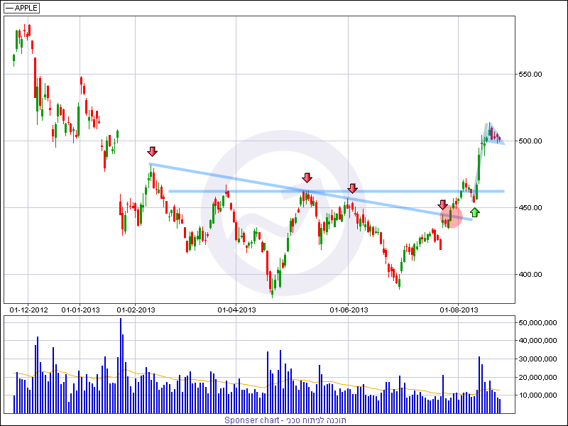 בטווח הקצר, המניה ביצעה "מנוחה" בשבוע האחרון ע"י תנועה צידית (side way) ומאפשרת לכסף חדש להחליף ידיים ולהיכנס למניה. עצם השמירה על רמה של 500 דולר מראה על עוצמה וככל הנראה תכין את המהלך העולה הבא שיגיע מעל לגבוה האחרון - 513.7 דולר.