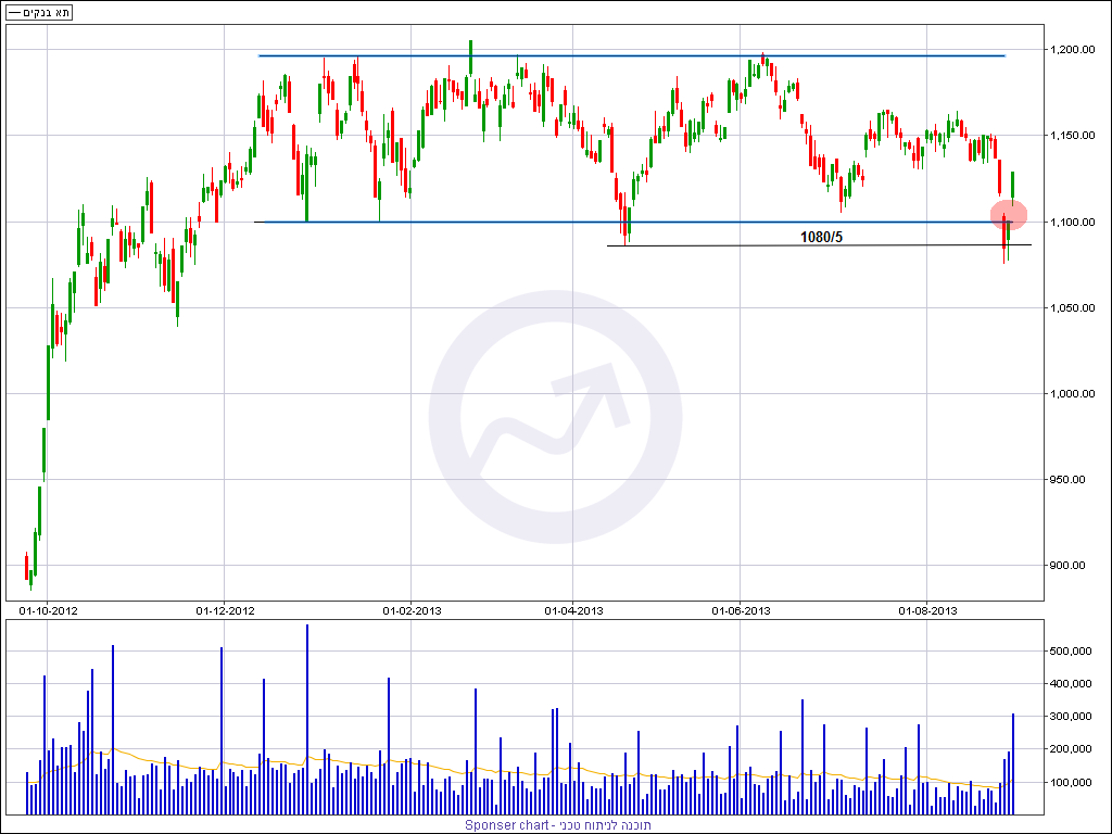 מדד הבנקים מסיים שבוע מסחר סופר תנודתי ושומר בסופו של דבר על נעילה שבועית מעל לרמת תמיכה סביב 1100 נקודות. במהלך השבוע ראינו ירידות חדות במדד בעקבות המתיחות האזורית דבר שגרם לשבירת התמיכה ובדיקה של הנמוכים מחודש טכנית כל עוד המדד נסחר שבועית מעל התמיכה הדשדוש עתיד להמשך, סביר שנראה בדיקה נוספת בתקופה הקרובה של אזור 1100 נקודות.
