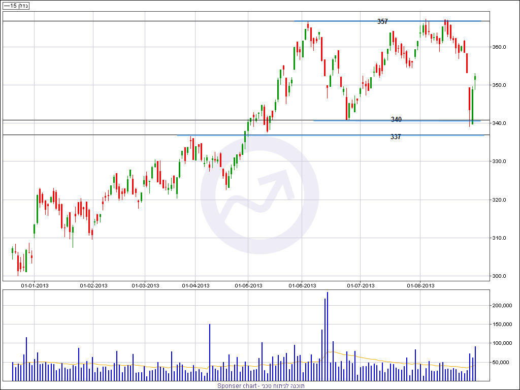 מדד הנדל"ן המשיך להיות חלש גם השבוע כשהירידות החדות בשוק באמצע השבוע פגעו בו בעוצמה והביאו אותו לאזור הנמוך של חודש יוני האחרון סמוך ל 340 הנקודות. בשני ימי המסחר הבאים ראינו תיקון עולה חזק בהתאם לכלל השוק. טכנית אזורי תמיכה מהותיים מאוד נמצאים סביב 340 ו 337 נקודות שבירתם ככל הנראה תסמן סיום הגל העולה של השנה האחרונה ויציאה לתיקון מעט ארוך ועמוק יותר.