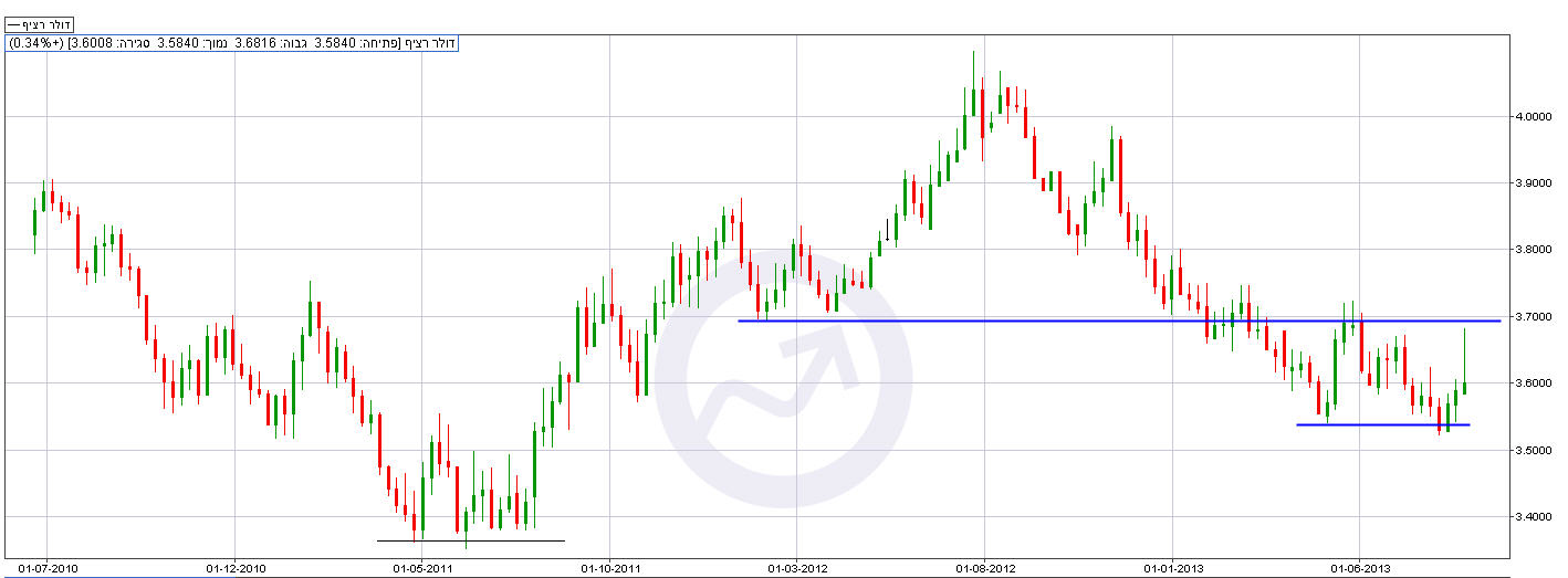 המטבע האמריקאי התחזק מול השקל בשבוע החולף, ונסחר כעת (שישי) סביב רמה של 3.615 ש"ח לדולר, לאחר שכבר נסחר ברמה של 3.68 ש"ח לדולר במהלך השבוע. המסחר בוול סטריט (חמישי) נחתם בעליות שערים על רקע כמה נתוני מאקרו חיוביים. מהבחינה הטכנית, לאחר שהדולר הצליח להתמך שוב מעל רמת התמיכה הטכנית החשובה באזור 3.55 ש"ח לדולר, הוא זינק כמעט עד ההתנגדות סביב 3.70 ש"ח לדולר, אולם חזר לדשדש בטווח הנ"ל.