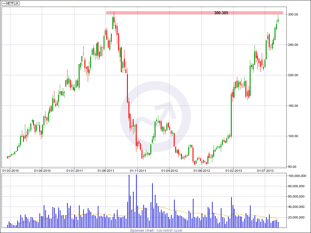 התנועה העולה בשבועות האחרונים והדחיפה לאזורי השיא מלווה בתנודתיות יחסית ערה ולא בתצורה עולה חלקה, רמה של 300-305 דולר הינה רמת התנגדות מהותית מאוד, שיא כל הזמנים ובנוסף רמת מחיר עגולה פסיכולוגית. לאחר המהלך העולה האחרון מחזיקי המניה ללא ספק יכולים לממש חלק מהאחזקות שלהם ברמות שיא ולאחר התאוששות מרשימה בשנה האחרונה.