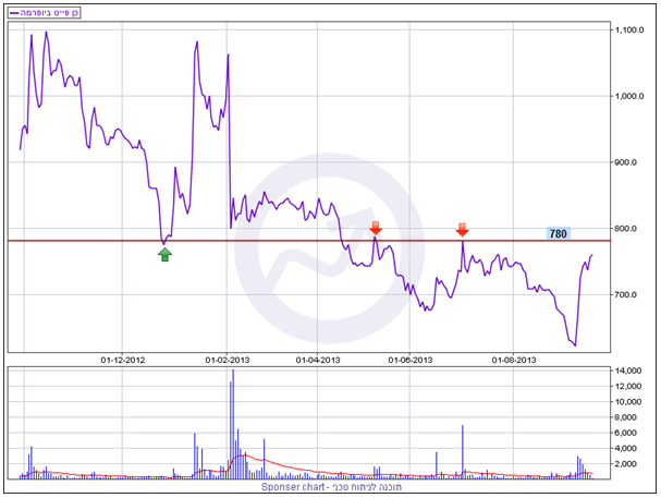 מהזווית הטכני ניתן לראות כי, המניה נסחרת במגמה חיובית החל מ- 11/09/2013 שזהו גם מועד הודעת החברה על רישום הנייר למסחר בארה"ב כ- ADR Level II. מבחינת מחיר, יש לעקוב אחר אזור ה- 780 נקודות אשר מהווה רמת התנגדות היסטורית ובמידה והנייר יפרוץ רמה זו כלפי מעלה (שער סגירה) יתקבל טריגר חיובי להמשך המגמה החיובית בנייר.