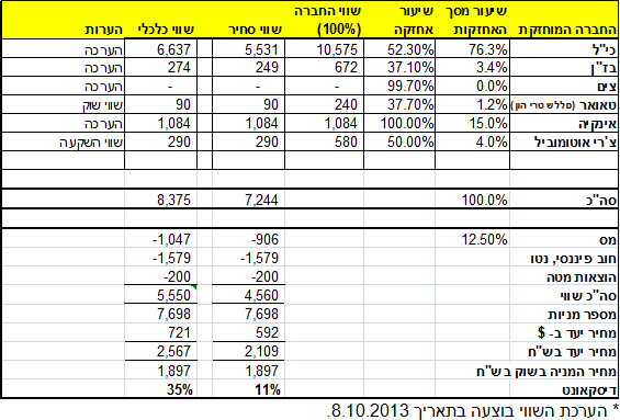 - בהערכת השווי, נלקחו בחשבון רק החברות המהותיות בעץ האחזקות.
