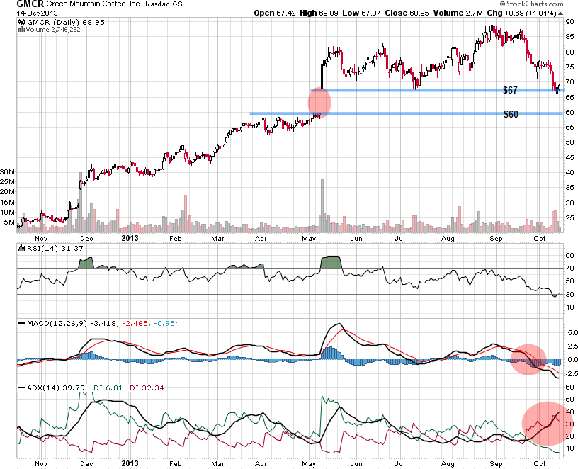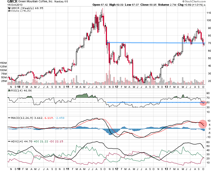 ניתוח טכני – מניית GMCR נסחרת מחודש מאי האחרון מעל רמה חשובה מאוד של 69-70 דולרים. פריצה של רמה זו ובדיקתה בחודש יולי הביאה את המניה לרמת שיא שנתי סביב 90 דולר, אזור שלא בקרה בו מאז 2011 שם קבעה גבוה כל הזמנים במחיר של 110-111 דולר למניה.