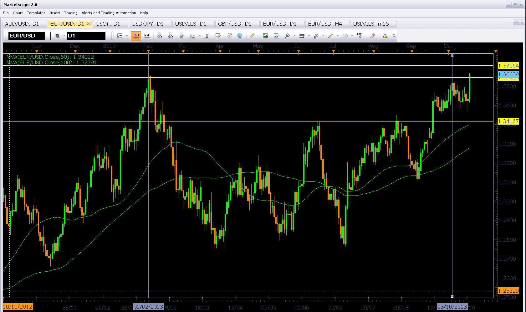 האירו מעפיל לשיא חדש למול הדולר ומאיים על השיא של פברואר: האירו-דולר נמצא במגמת עלייה מאז השפל של תחילת יוני ב-1.275 והוא קובע כל העת שיאים גבוהים יותר. הזינוק ביממה האחרונה דחף את הצמד מעל השיא האחרון ב-1.363 וכעת הצמד ברכו לבחון את השיא המשמעותי של פברואר ב-1.37. מבחינת תורת הגלים, נראה שאנו בתחילתו כעת של הגל החמישי והאחרון במגמת העלייה מ-1.275, ועל כן ייתכן שאנו לקראת סיומו של מהלך העליות הנוכחי לפני שנראה תיקון כלשהו.
