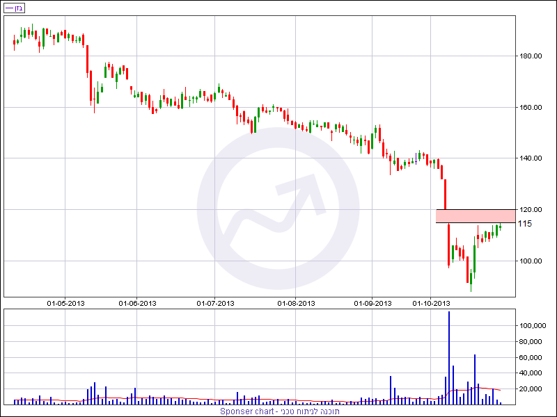 ניתוח טכני – המניה רשמה התאוששות מרשימה של 24% מהשפל שרשמה ב15/10 ברמה של 91 נקודות כאשר בימי המסחר האחרונים המניה נסחרת ביציבות ובטווח מחירים צר מאוד. אזור 115-120 נקודות הינו שטח הגאפ (פער מחירים) שנפער במהלך המימוש החד כך שבפועל אזור 120 נקודות אמור לשמש כרמת התנגדות שכן כל המשקיעים לא הספיקו למכור בגלל הגאפ, ימתינו בפתחו.