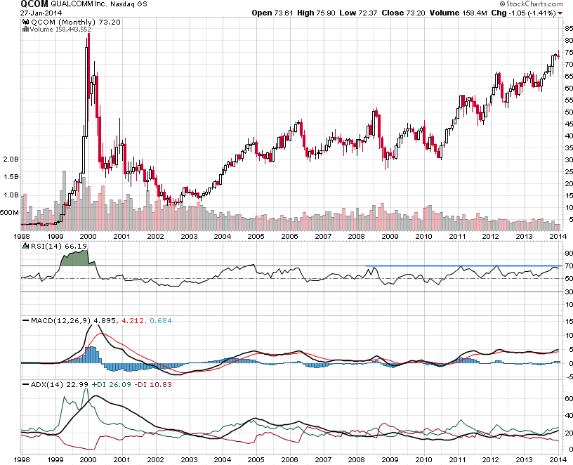 בגרף הרב שנתי מניות החברה מגיעות לאזורי בועת המחירים של שנת 2000 בהן נסחרו מניותיה סביב רמה של 80-87 דולר למניה, זה קרה בדיוק לפני 14 שנים בחודש ינואר שנת 2000.