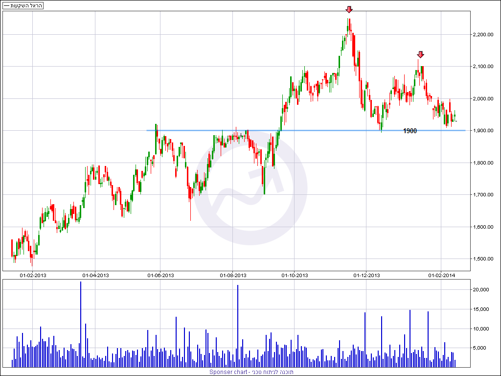 בטווח הקצר יותר נסחרת המניה בשיא יורד ברור על הגרף השוכן באזור של 2120 נקודות אותו ראינו גם בגרף השבועי. אזור תמיכה אופקי חשוב מאוד נמצא סביב 1900 נקודות ושבירתו יכולה לא רק להעמיק את התיקון היורד אלא להכניס את המניה למבנה מחירים יורד של שיאים ושפלים יורדים.