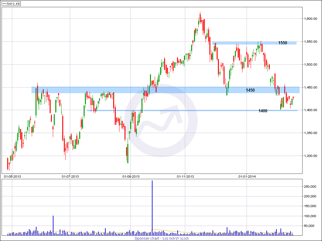 בגרף היומי של מדד הביטוח אנחנו רואים שני גלים יורדים ברורים באחד מרמות השיא סביב 1600 באמצע נובמבר לאזור של 1430 נקודות באמצע דצמבר. השני גל יורד שהחל באמצע ינואר עד לשבועיים האחרונים בהם נבלם המדדים סביב 1400 נקודות. טכנית, מניות המדד עשו תיקון יורד מעט חלש מהמדד כשהראל השקעות היא זו שמשכה חזק יותר למטה ואותה ניתחתי בשבוע שעבר.