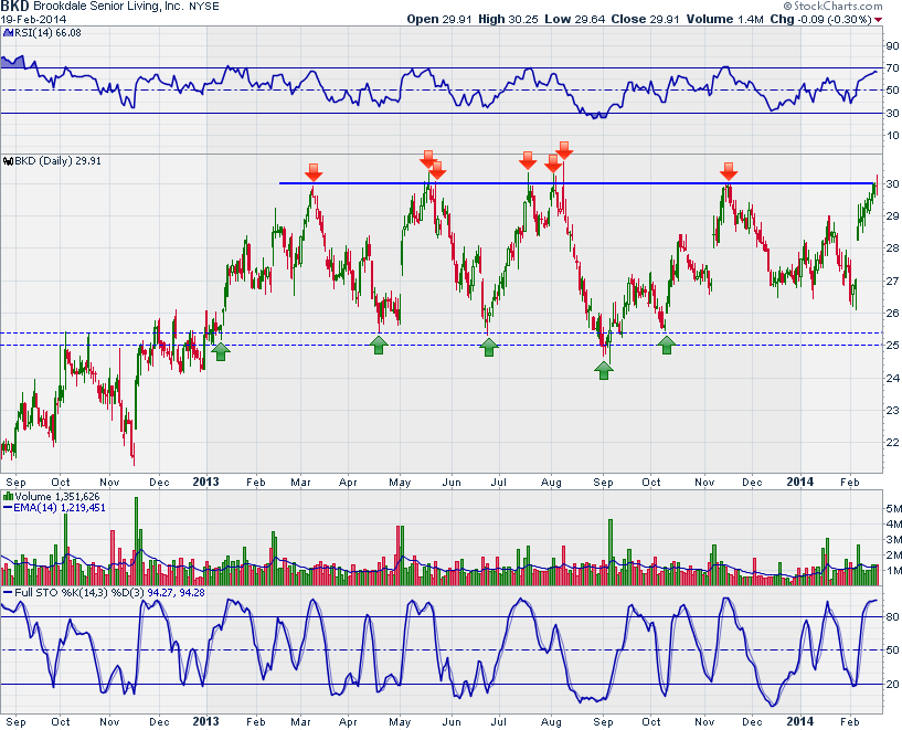 מהזווית הטכנית, המנייה מדשדשת מעל שנה בטווח מסחר ברור: מלמעלה 30 דולר ומלמטה רף 25 דולר. מדובר בטווח דשדוש של 5 דולר / כ- 16% אחוז מהרף העליון ועד לרף התחתון. מתחילת 2013 המניה נכשלה 7 פעמים כאשר כל כישלון החזיר את המניה לרף התחתון וחוזר חלילה.