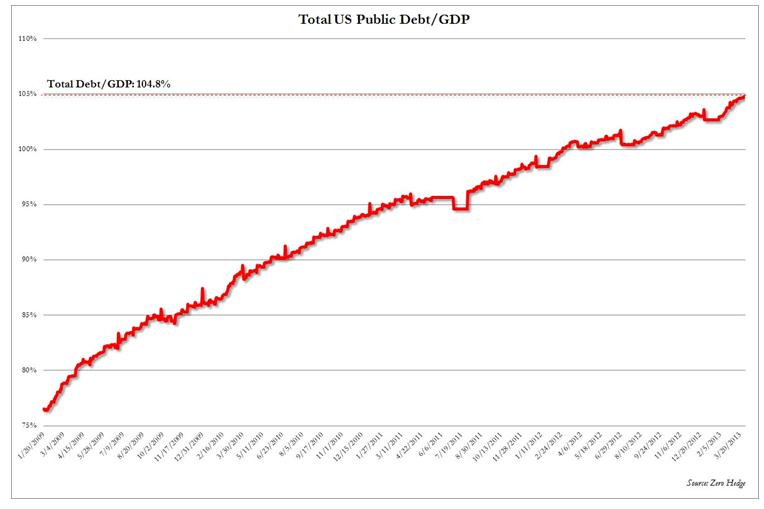 החוב הלאומי של ארה"ב הינו גדול יותר מכל כלכלתה וממשיך לצמוח בקצב מבהיל.
