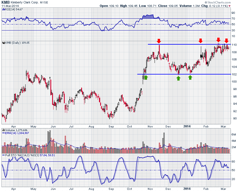 דשדוש ממושך המתפרש על פני תקופה של כארבעה חודשים בטווח מחירים ברור של כ- 8%. מלמעלה רף ה- 110 דולר מהווה רמת התנגדות בעוד שרף ה- 102 דולר מהווה רמת תמיכה אמינה. בפועל המניה נצמדת לרף העליון של טווח הדשדוש החל מאמצע חודש פברואר, אולם טרם חתמה יום מסחר אחד מעל רמה זו.