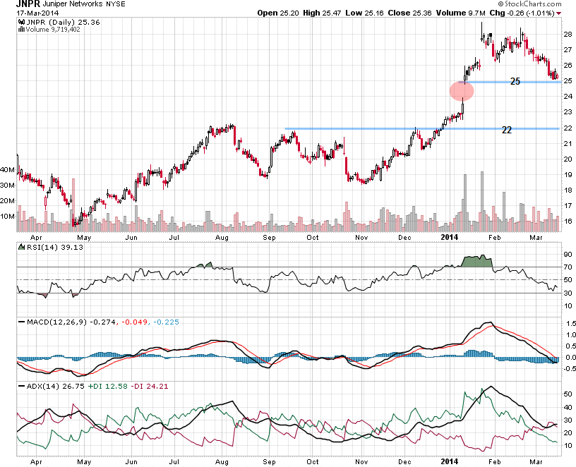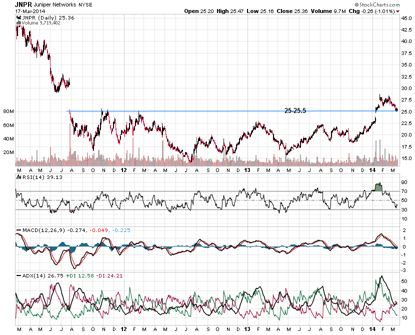 בחודש האחרון יצאה המניה לגל מתקן לאחר שבקרה באזורי שיא של 52 שבועות סביב 28.75-28.5. בימים האחרונים חזרה המניה לאזור של 25 דולר שהוא כאמור אזור אופקי מהותי מהגרף הארוך יותר.