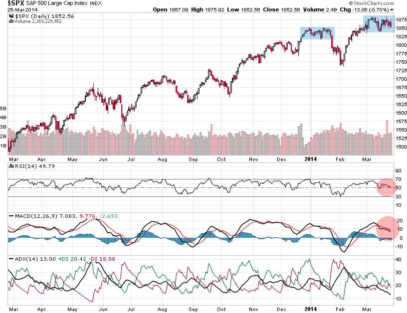 שנת 2014 נפתחה בצליעה מבחינת המדד עם חוסר תשואה מתחילת השנה, זאת לאחר שנה מצוינת ב 2013 בו גמע מהלך עולה נדיר של קרוב ל 30%. התנודתיות שירדה יחד עם רמות מחיר גבוהות במדד מצליחות לדחוף את המדד לשיאים חדשים אך לא משמעותיים, אלא עוד עליה של 1-2 אחוזים מהשיא האחרון של ינואר ושוב דשדוש של חודש ימים.