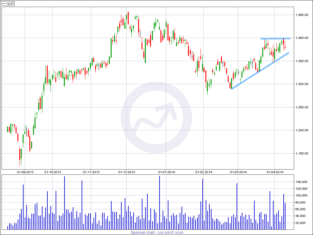 ניתוח טכני – ככתוב מניית לאומי נסחרת כ 5.5% משיאה השנתי שנקבע קצת מעל 1450 נקודות. ניתן לראות שבטווח הקצר נבנה קו מגמה עולה ומנגד התנגדות סביב 1400 נקודות. סוחרים אשר מאמינים בסגירת פערים בין בנק לאומי לפועלים יכול לחפש אפשרות כניסה סמוך לקו המגמה העולה סביב רמה של 1360/70 נקודות בהנחה של פריצה מעלה של 1400 שם צריך לחזק עסקה. מנגד ירידה מ 1345 נקודות שהיא השפל האחרון על הגרף יכולה לא רק לפגוע בטרנד העולה אלא לסיים אותו.