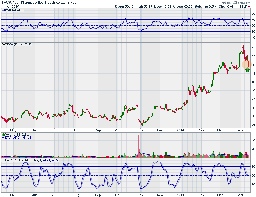 במהלך שבוע שעבר, ספגו רוב מניות ענף הרוקחות (פרמצבטיות) ירידות שערים. בין הגדולות ניתן למנות את Novartis(סימול: NVS), ו- Actavis (סימול: ACT). גם מניית טבע רשמה ירידות שערים של כ- 4.5%, אולם המניה שומרת על רף ה- 50 דולר כאשר ביום שישי רשמה היפוך נוסף מעל רמה זו.