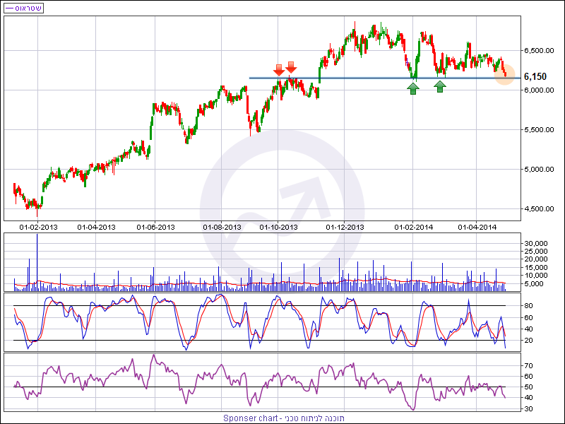 מהזווית הטכנית, המניה נסחרת מעל רמת תמיכה אופקית חשובה סביב רמה של 6,150 נקודות. רמה זו שימשה עד לפני שישה חודשים כרמת התנגדות ובחודש אוקטובר 2013 המניה פרצה רמה זו כלפי מעלה ורשמה עליות שערים עד לסוף דצמבר.