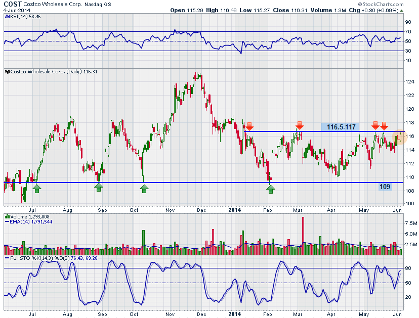 הנחת עבודה – פריצה כלפי מעלה וסגירה מעל טווח ההתנגדות 116.5-117 דולר תהווה טריגר חיובי לסיום הדשדוש הממושך ותחילת מגמה עולה חדשה. התבססות מעל 116.5 לאחר הפריצה תחזק את הנחת העבודה. מחיר היעד של התבנית הנוכחית סובן ברמה של 122 דולר עם פוטנציאל חזרה לשיא של 2013 סביב 125.5 דולר.