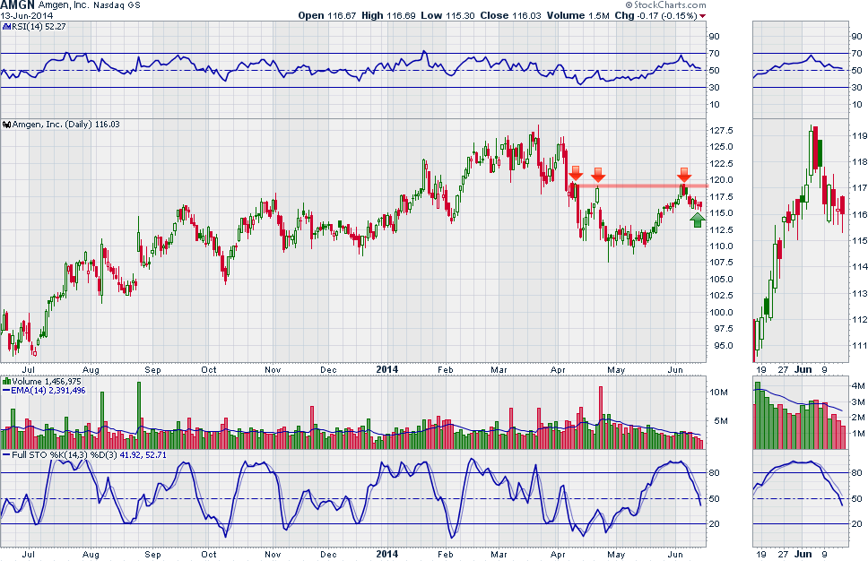 אמג’ן (סימול: AMGN) החברה עוסקת במחקר, פיתוח, ייצור ושיווק תרופות המבוססות על ביולוגיה תאית ומולקולארית. מניות החברה נסחרות בבורסת הנאסד"ק ונכללות במדד נאסד"ק 100 ואס&פי 500 לפי שווי שוק של 87.84 מיליארד דולר.